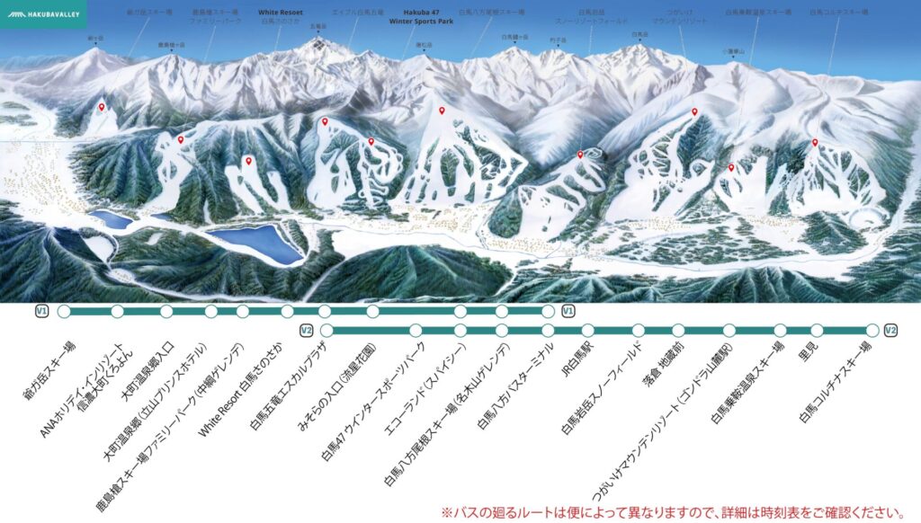 ●以下のシャトルバスはスキー場により運行されており、原則スキー場発/着のみご利用可能となり、乗り換えは不可となります。