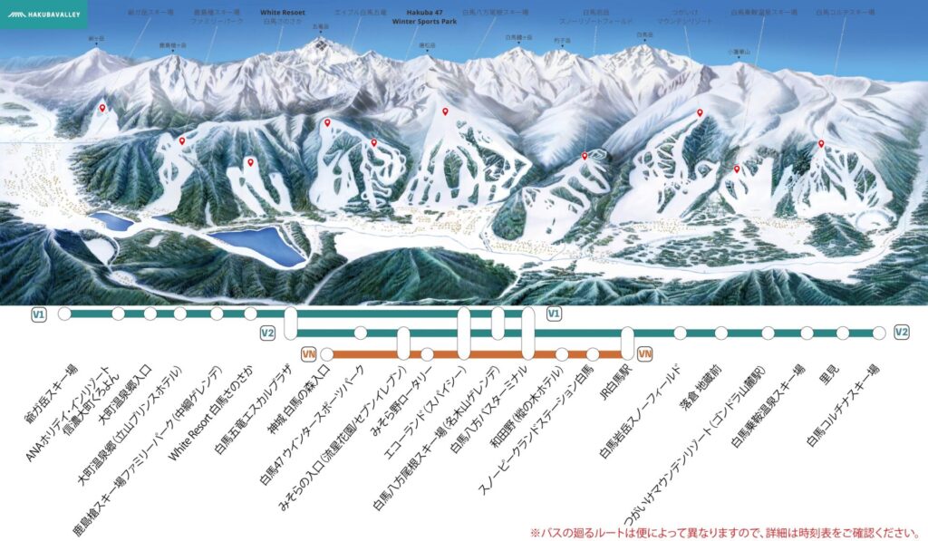 ●以下のシャトルバスはスキー場により運行されており、原則スキー場発/着のみご利用可能となり、乗り換えは不可となります。