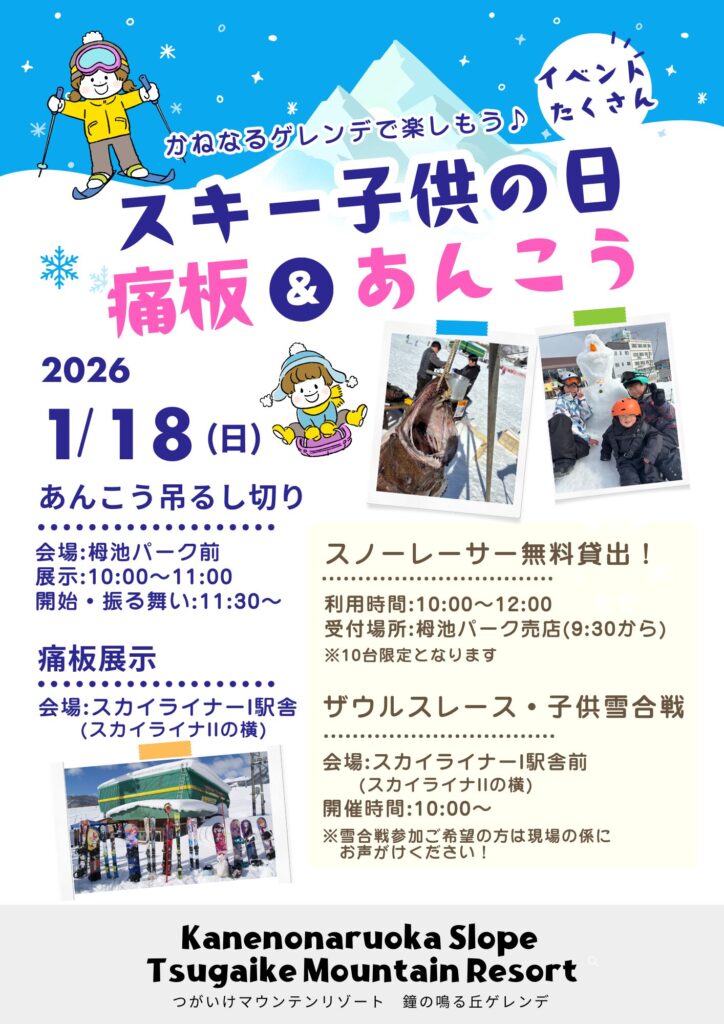 【つがいけマウンテンリゾート】1/18(日)は「スキーこどもの日」!家族で楽しめるイベントが満載