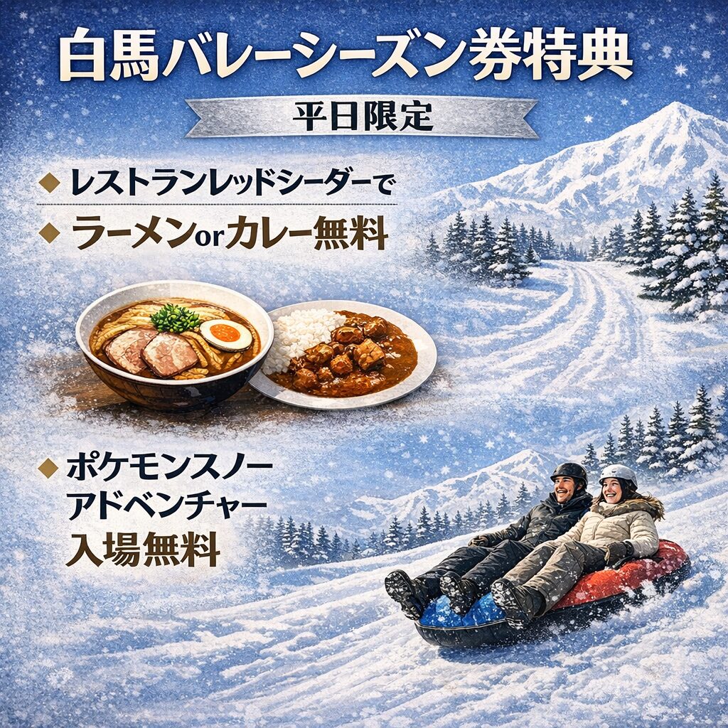 Hakuba Valley全山共通シーズン券をお持ちの方限定で、鹿島槍スキー場ファミリーパークの平日限定・お得な特典が追加されます!